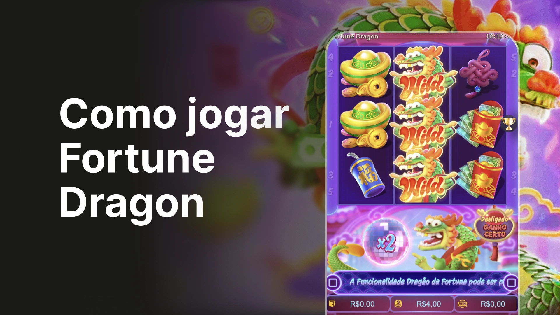 Há também a funcionalidade Dragão da Fortuna, que pode ser ativada em qualquer rodada e possui 8 rodadas da fortuna.
