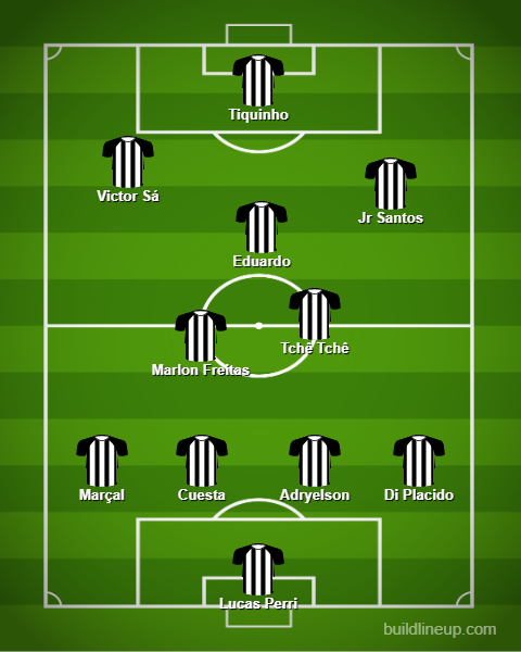 Adryelson sentiu dores e foi substituído por Danilo Barbosa. E o volante que entrou para atuar como zagueiro foi o responsável pela primeira finalização alvinegra na direção do gol em todo o jogo. Aos 32, em cobrança de escanteio, Danilo subiu mais alto que a marcação e cabeceou forte para empatar o jogo. O gol injetou confiança e acordou o Glorioso para a necessidade de vencer o jogo.