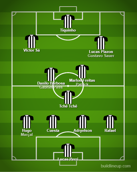 Castro mudou duas peças em relação ao time que goleou o Boavista no último domingo. Saíram Marlon Freitas e Lucas Piazon para as entradas de Patrick de Paula e Gustavo Sauer. Enquanto o Botafogo ainda não tem um titular absoluto no lado direito de ataque, o treinador testa suas opções conforme a exigência do adversário: quando precisou de poder de recomposição, como no clássico contra o Fluminense, Piazon foi o escolhido; quando espera vencer a batalha pela posse e precisa de um jogador mais próximo do ataque com maior capacidade de finalização, Sauer aparecia como a melhor opção. Contudo, o camisa dez ainda sofre com a falta de regularidade e não consegue engatar uma sequência de boas atuações. O momento atual é de Lucas Piazon, que joga o seu melhor futebol com a camisa alvinegra.