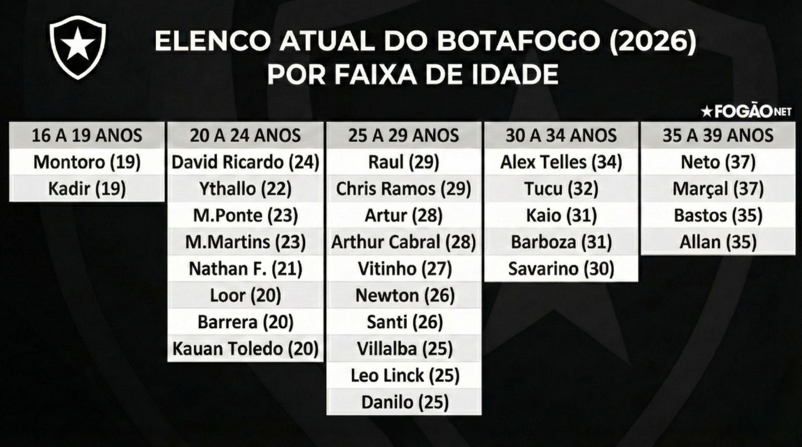 O Botafogo tem um elenco adulto, experiente e equilibrado. Jovens existem, e devem existir, mas estão longe de ser maioria.