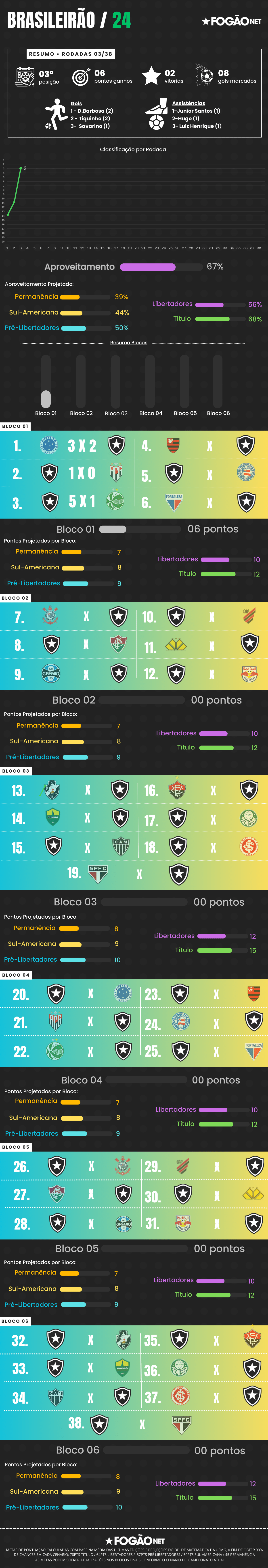 Info Blocos Botafogo • Rodada 03 • Brasileirão 2024 | Goleada que faz dar salto na tabela