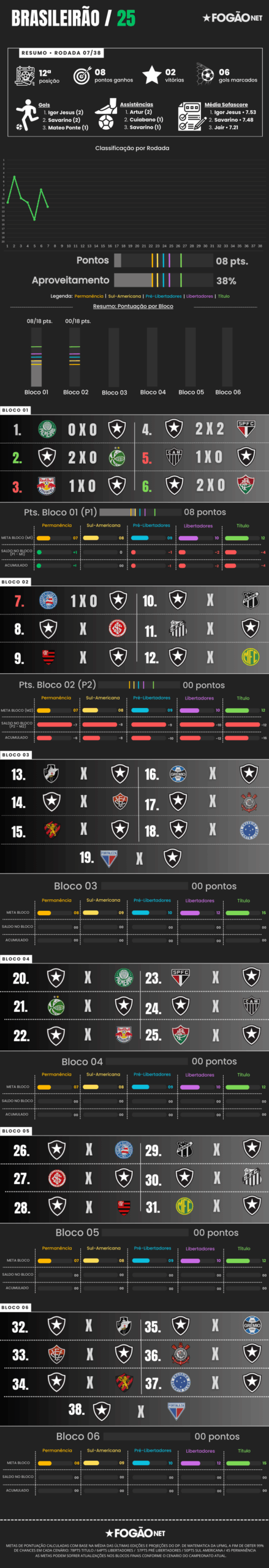 • O Botafogo tem o 15º ataque do campeonato com 06 gols marcados.