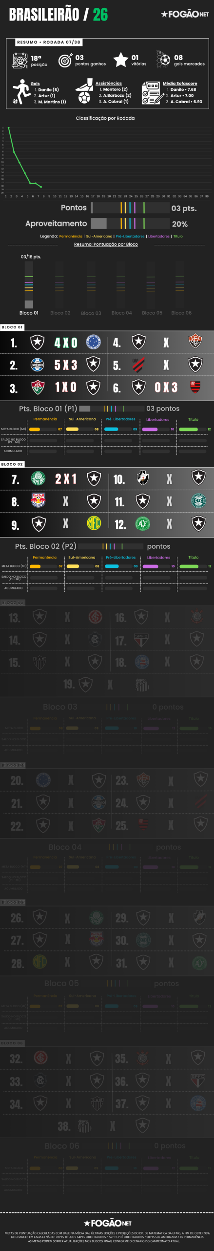 Mantemos as projeções de pontuação do último campeonato, em parceria com o departamento de matemática da UFMG. Confira as referências:
