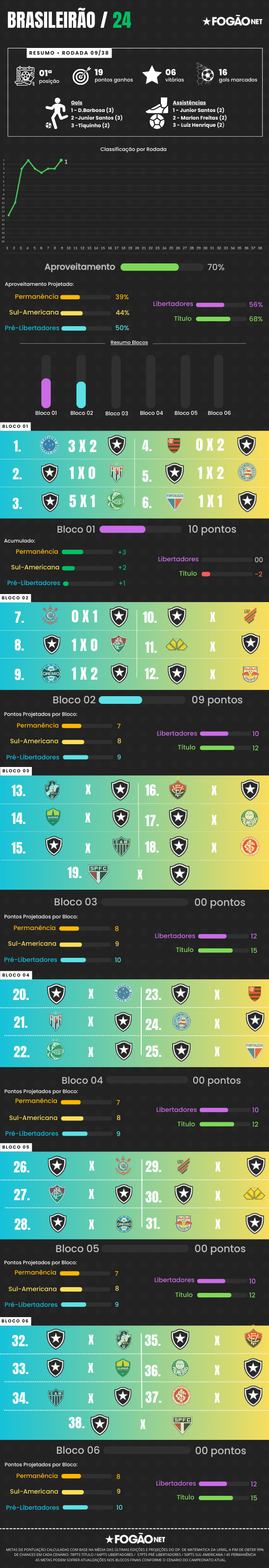 – O aproveitamento de pontos total do Botafogo está em 70%, o que historicamente estaria na margem de times que lutam pelo título.