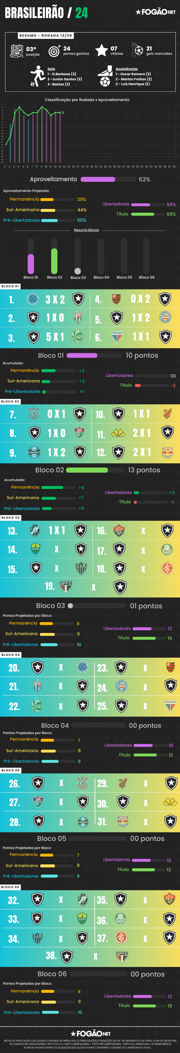 O Botafogo empatou em 1×1 com o Vasco em São Januário. Essa partida iniciou o bloco 3 (jogos 13 a 19) do nosso acompanhamento no Campeonato Brasileiro: