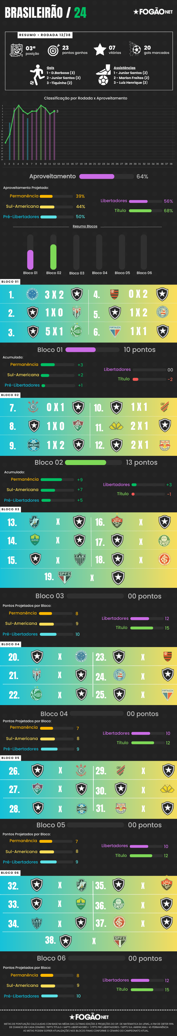O Botafogo venceu por 2×1 o Red Bull Bragantino. Essa partida finalizou o bloco 2 (jogos 6 a 12) do Campeonato Brasileiro do nosso acompanhamento: