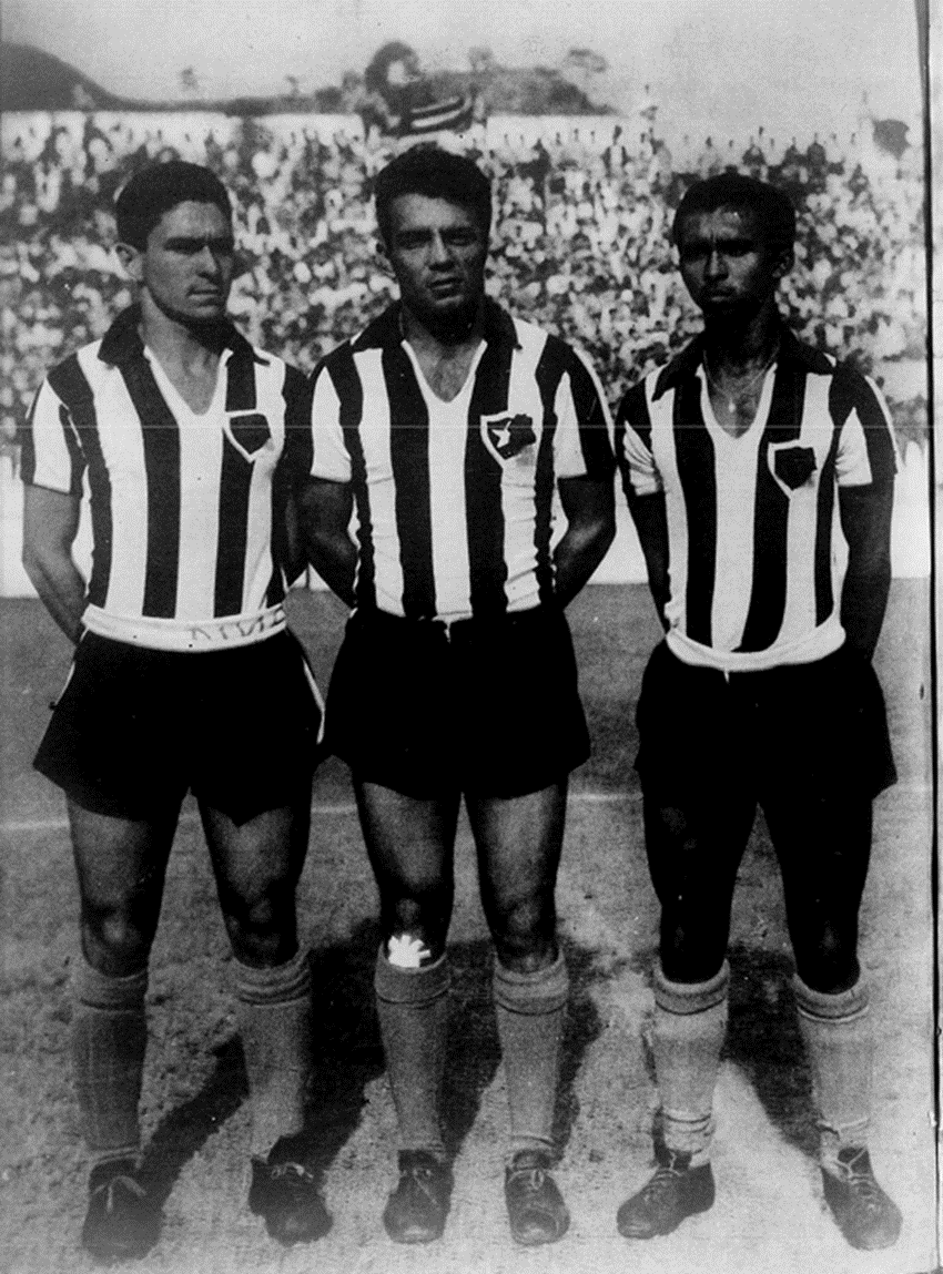 Pelos próximos 14 anos, mesmo após a fusão, esse seria nosso uniforme oficial com trocas somente no meião entre preto e banco. Em 1948, Carlito Rocha assumiu mandato como presidente do clube. Após excursão pela Bolívia e uma série de amistosos em que usamos o “tradicional” uniforme com calção branco e terminamos invictos, a imprensa começou a divulgar uma superstição que o calção preto nos dava azar. A verdade é que o Botafogo naquele ano voltou a ser campeão após 13 anos utilizando calções brancos e meias brancas.
