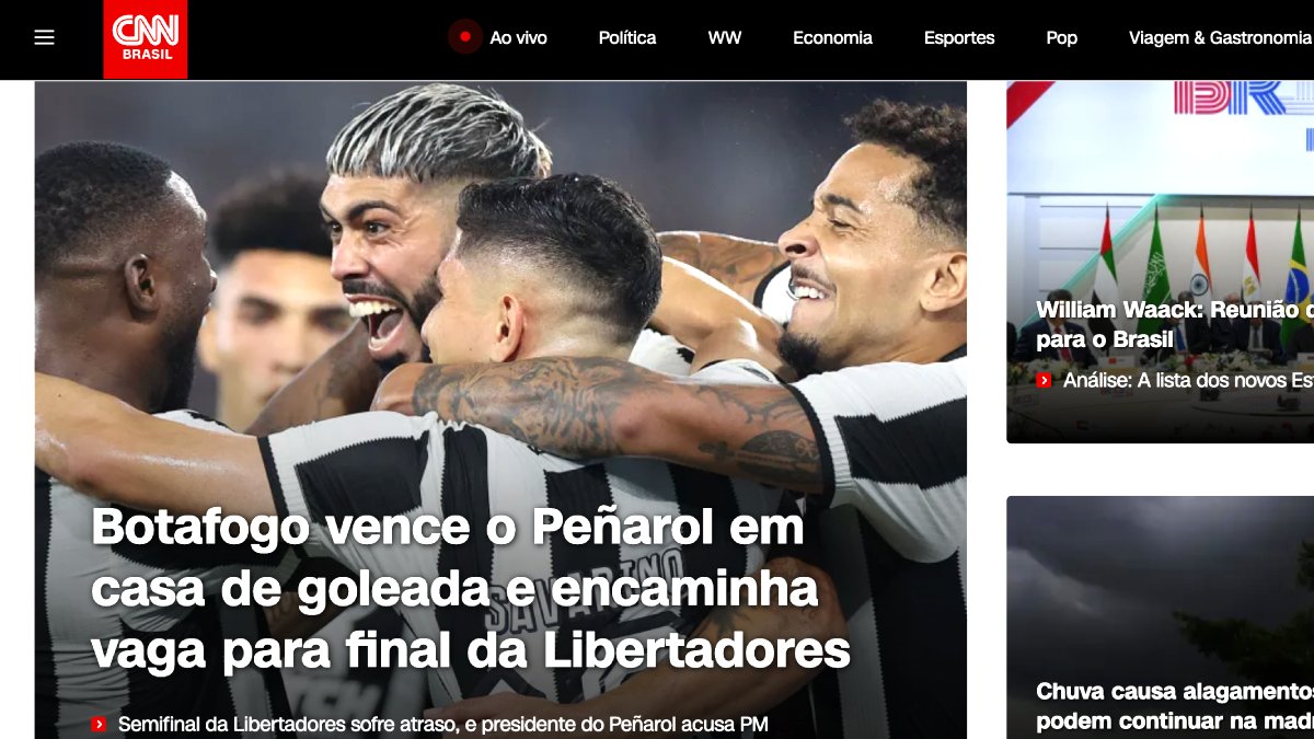 O “Terra” lembrou que o Botafogo está perto de fazer uma final inédita em e resumiu a vitória alvinegra como um “show no Nilton Santos”. Já o “IG” preferiu definir a atuação dos comandados do técnico Artur Jorge como uma “aula de futebol”. A “CNN” foi morna na manchete, mas não poupou destaque para o Glorioso, dando o maior espaço da capa do portal com uma bonita foto do time se abraçando em campo. O jornal carioca “O Globo” falou em “atropelo” em “um dos maiores jogos da história” do clube.