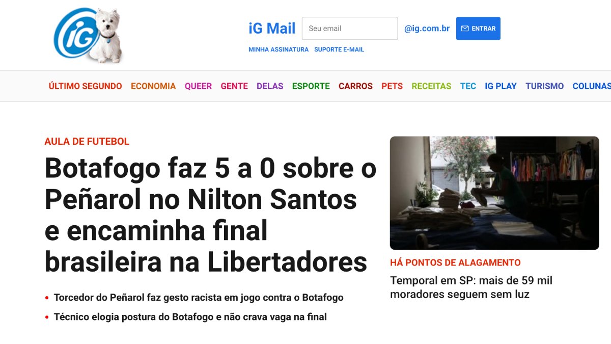 No FogãoNET todas as manchetes são, há 15 anos, sobre o Botafogo, obviamente. Mas sabemos que a chance do Glorioso ganhar um grande destaque em portais de notícias é algo raro. Imaginem então quando se torna a principal manchete da noite. Pois é, isso aconteceu, e em vários deles. A goleada histórica sobre o Peñarol por 5 a 0 na semifinal da Libertadores-2024 no Nilton Santos levou o Alvinegro para o “topo da home“, como é dito no jornalismo digital, até o amanhecer desta quinta-feira (24/10).