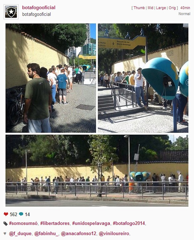 A torcida do Botafogo já se movimenta em bom número na busca de ingressos para a partida da próxima quarta-feira, às 19h45, no Maracanã, contra o Unión Española (CHL), pela Libertadores. Na tarde desta sexta-feira, houve grandes filas por bilhetes do jogo em General Severiano, sede do Glorioso.