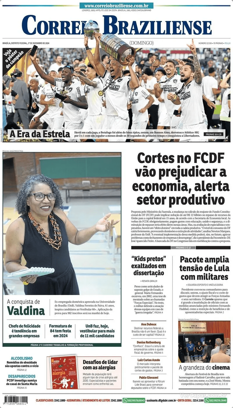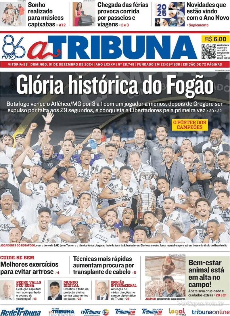 Jornais de redutos alvinegros, como o “Correio Braziliense”, do Distrito Federal, e “A Tribuna”, de Vitória, também destacaram o título do Botafogo em suas capas. Veja abaixo: