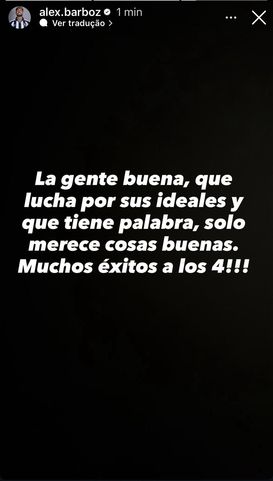 “As pessoas boas, que lutam por suas ideias e têm palavra, só merecem coisas boas. Muito sucesso para os 4!!!“, escreveu Barboza no Instagram, com um fundo preto.