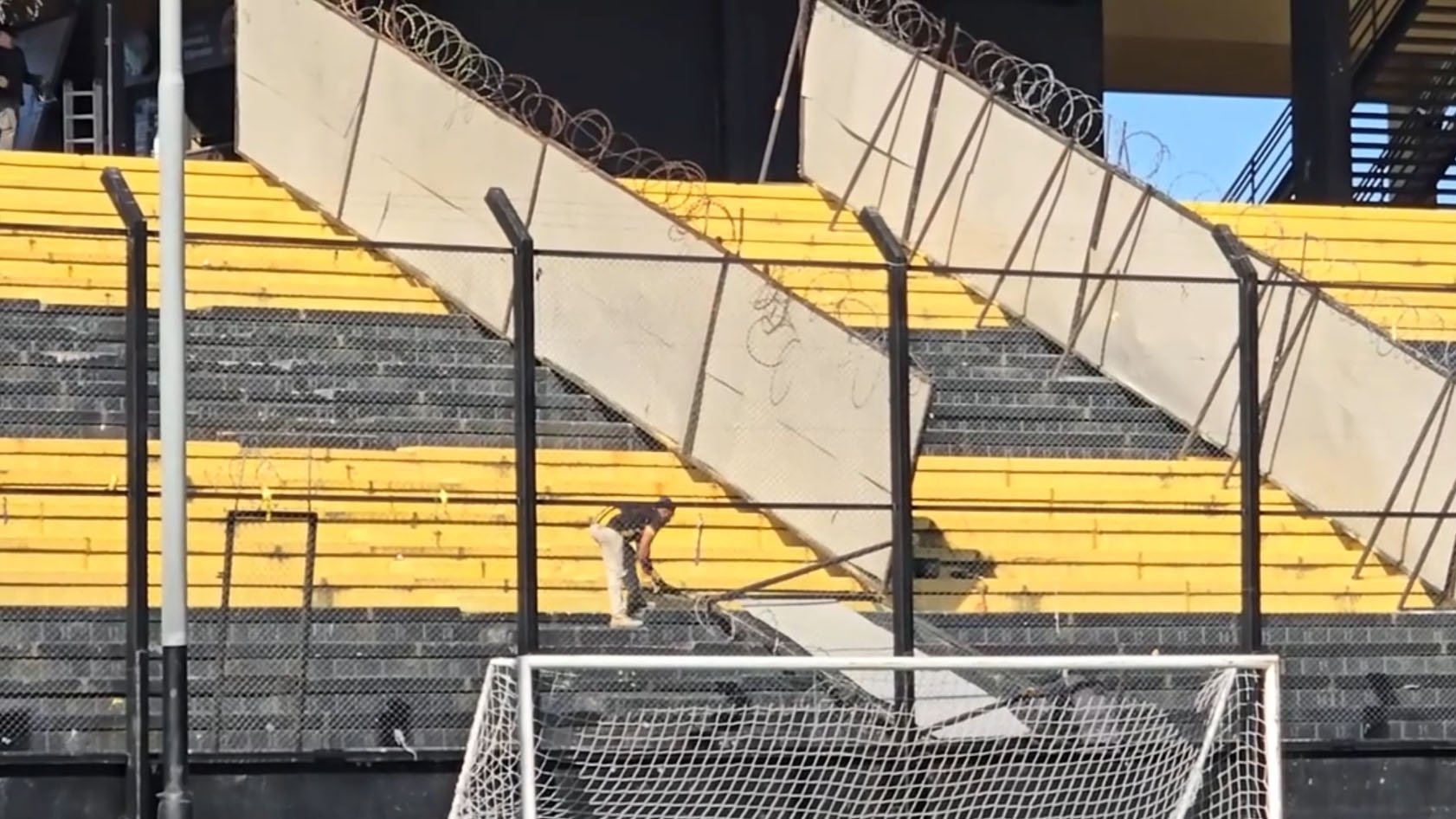 A “ESPN” registrou as imagens dos funcionários aparafusando os muros, que contam com uma cerca de arame farpado em cima. O setor visitante ocuparia parte dos anéis inferior e superior da “Tribuna Guelfi”, localizada à esquerda das tribunas de imprensa.