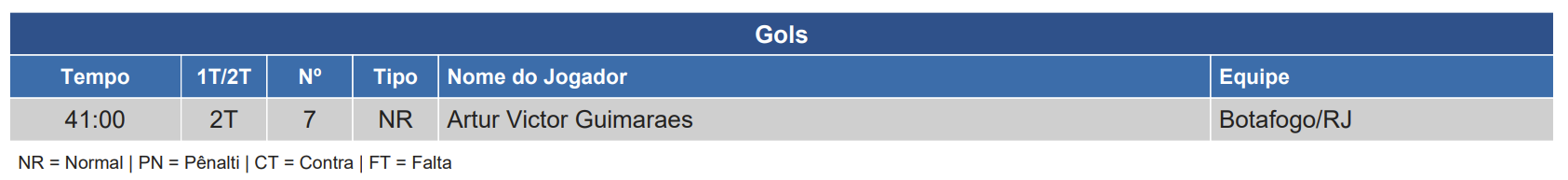 O autor do gol do Botafogo na vitória sobre o Santos gerou dúvidas pelas imagens, mas o árbitro Davi de Oliveira Lacerda (ES) confirmou na súmula: Artur foi quem balançou as redes neste domingo (1/6), no triunfo do Glorioso por 1 a 0 na Vila Belmiro.