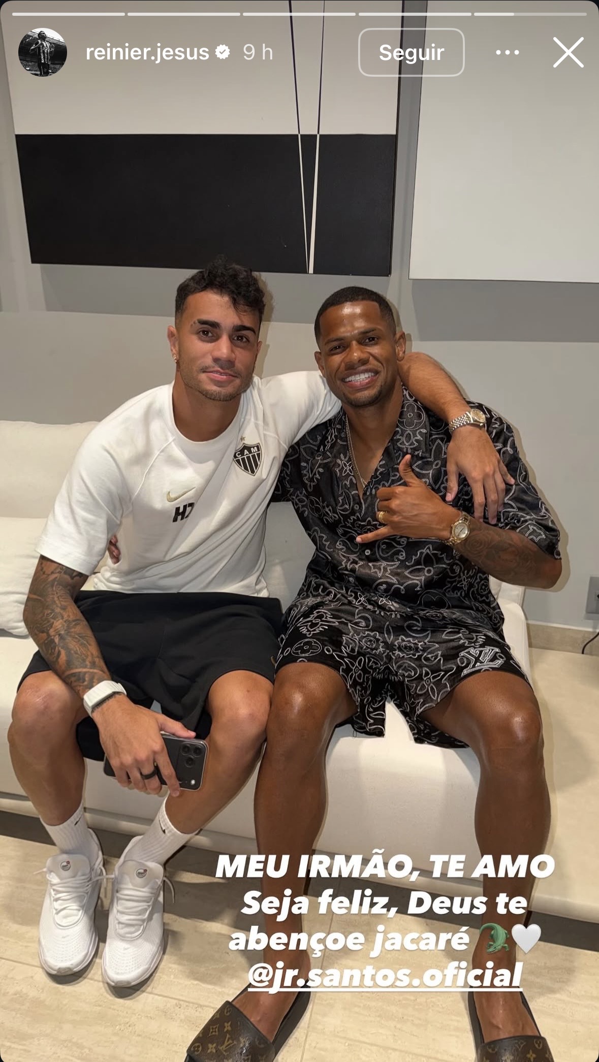 Mais um indício de que Júnior Santos está realmente de saída do Atlético-MG. O meia-atacante Reinier fez uma postagem nos stories do Instagram com um tom de despedida sobre o Raio, que está próximo de voltar ao Botafogo.