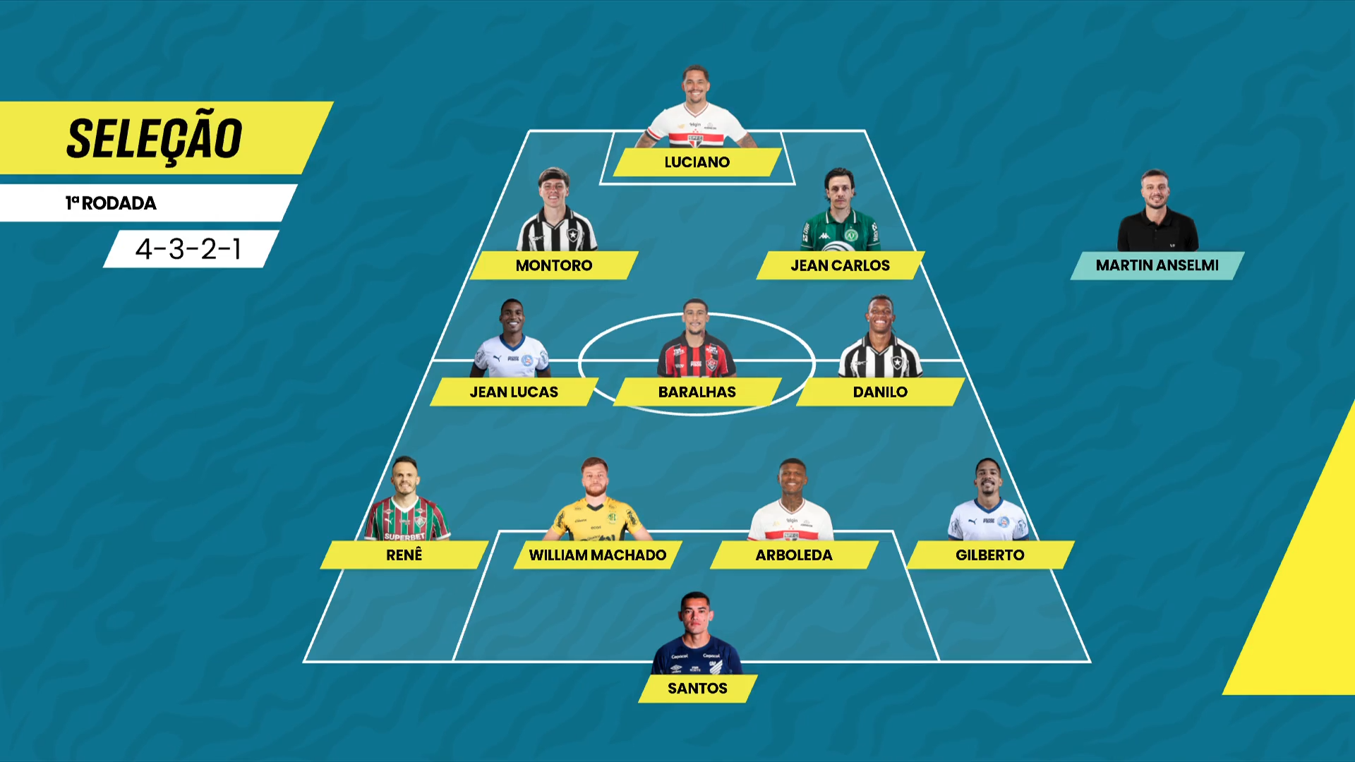A seleção da 1ª rodada ficou assim: Santos (Athletico-PR); Gilberto (Bahia), William Machado (Mirassol), Arboleda (São Paulo) e Renê (Fluminense); Danilo (Botafogo), Baralhas (Vitória) e Jean Lucas (Bahia); Montoro (Botafogo), Luciano (São Paulo) e Jean Carlos (Chapecoense) – Técnico: Martín Anselmi (Botafogo).