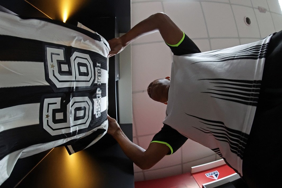 Cada lugar tinha a foto e o nome do atleta uniformizado, como é no vestiário do Estádio Nilton Santos. O estafe chegou cedo ao Morumbis para deixar tudo pronto.