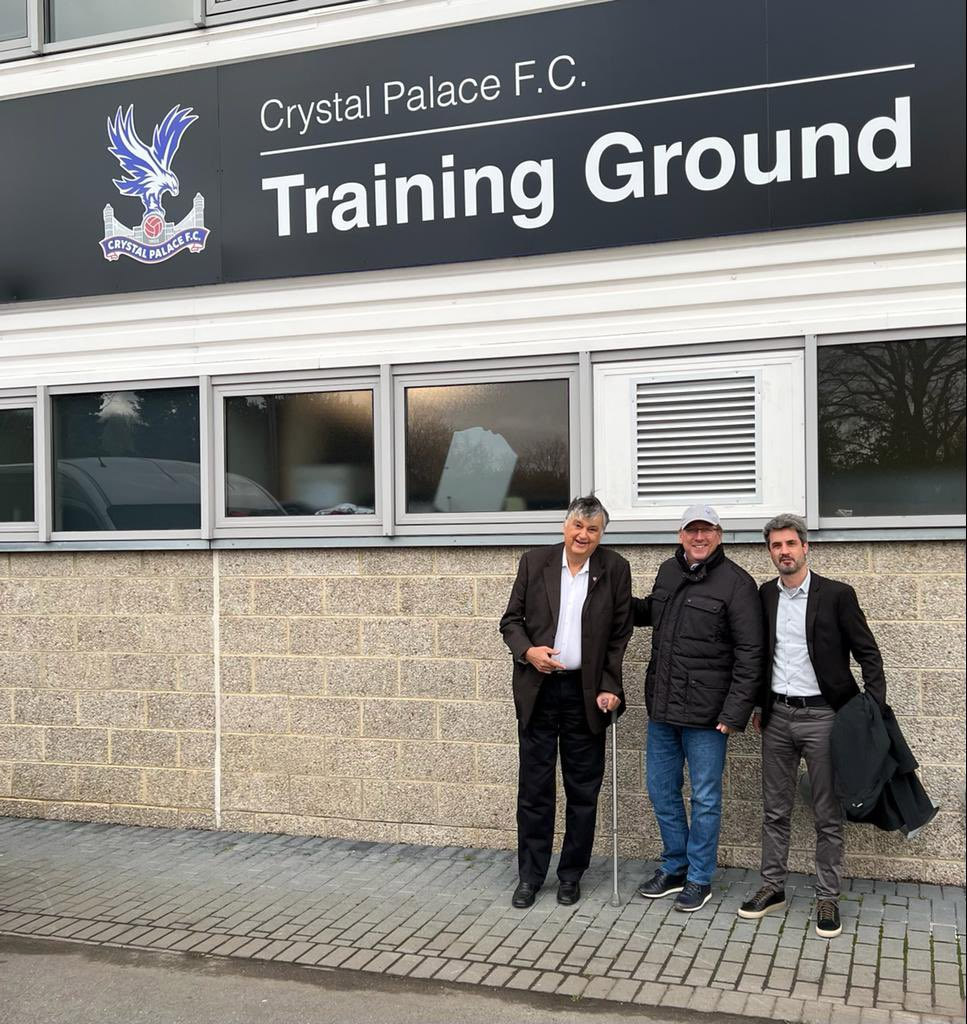 Pipocaram nas redes sociais imagens da visita do presidente do Botafogo, Durcesio Mello, do ex-diretor de futebol do clube, Eduardo Freeland, e do investidor John Textor às instalações do Crystal Palace, clube do qual o americano é coproprietário.