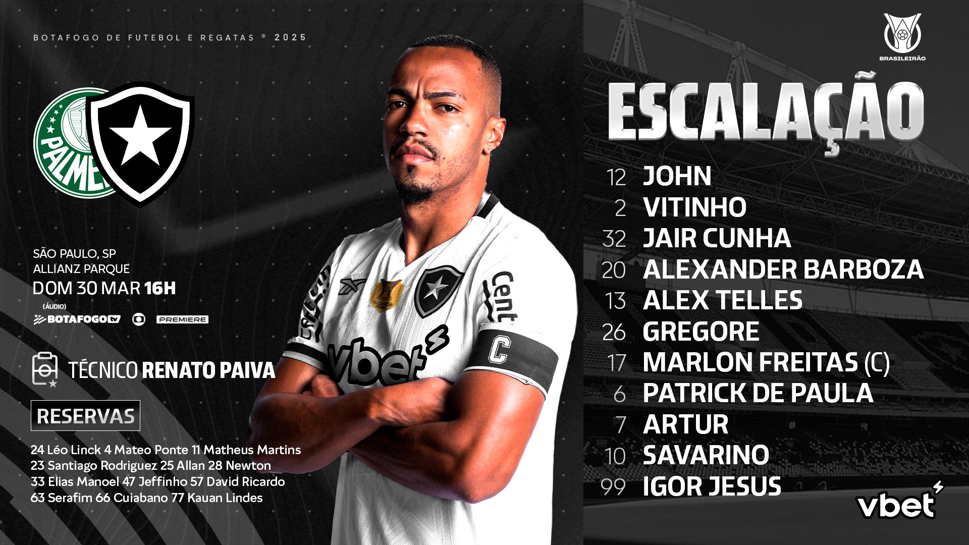 O Botafogo terá: John; Vitinho, Jair, Alexander Barboza e Alex Telles; Gregore e Marlon Freitas; Artur, Savarino e Patrick de Paula; Igor Jesus.