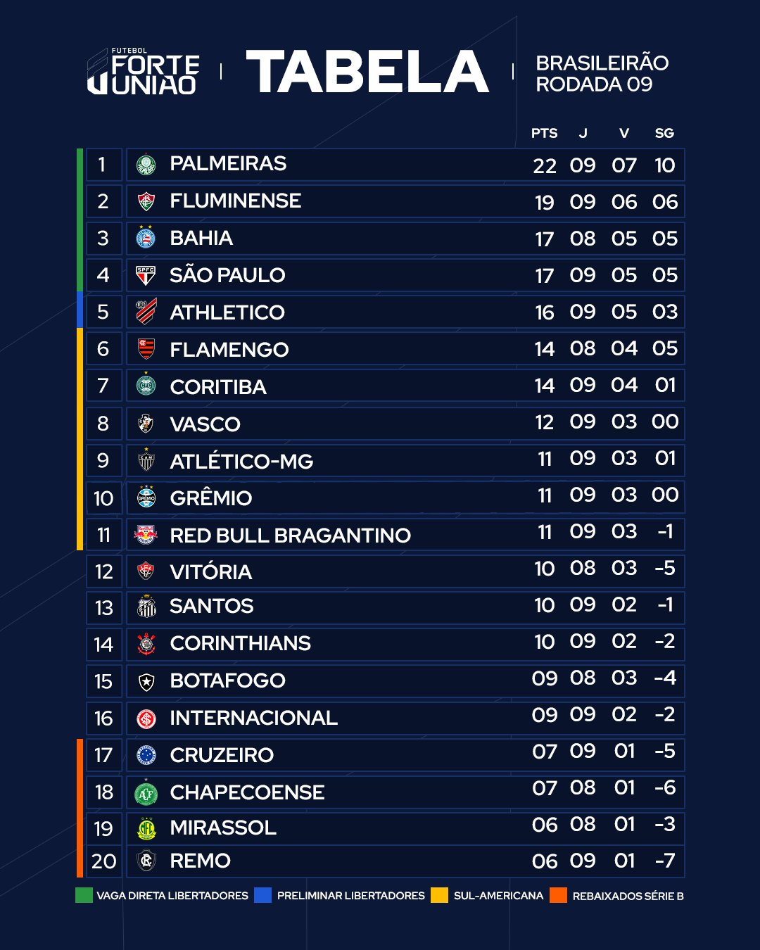 Depois do três conquistados em cima do Mirassol, o Botafogo havia deixado a zona de rebaixamento e saltado para 12º. Porém, nesta quinta, foi superado por Atlético-MG, Santos e Red Bull Bragantino, que venceram Chapecoense, Remo e Flamengo, respectivamente.