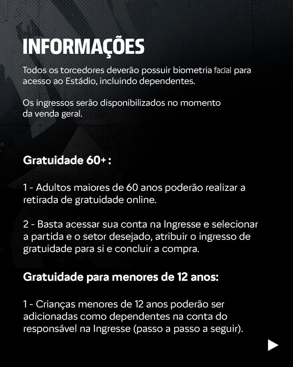 Idosos maiores de 60 anos, crianças menores de 12 anos e pessoas com deficiência poderão garantir acesso aos jogos pela plataforma da Ingresse, com procedimentos específicos para cada categoria. Veja as informações divulgadas pelo Botafogo: