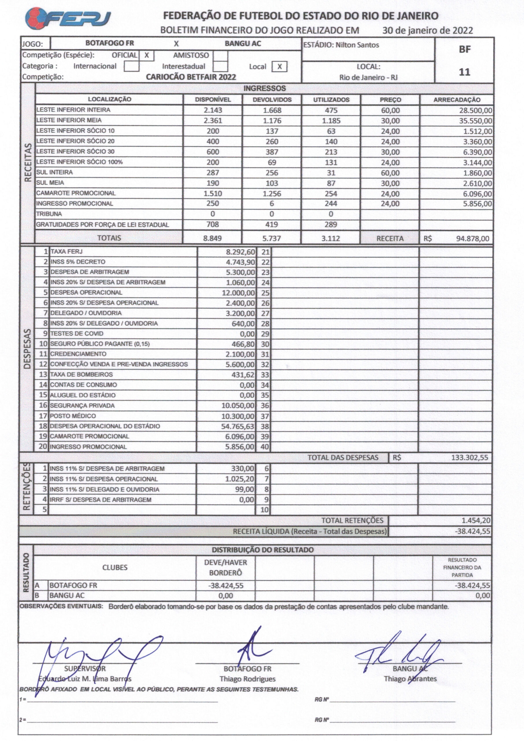 Para efeito de comparação, no primeiro jogo da temporada no Nilton Santos, no empate em 1 a 1 com o Boavista, terça-feira passada, o borderô apontou lucro de quase R$ 37 mil com um público menor (2.734 pagantes). A partida teve mando de campo da equipe de Saquarema e foi realizada no estádio alvinegro após ter sido “comprada” por empresários.