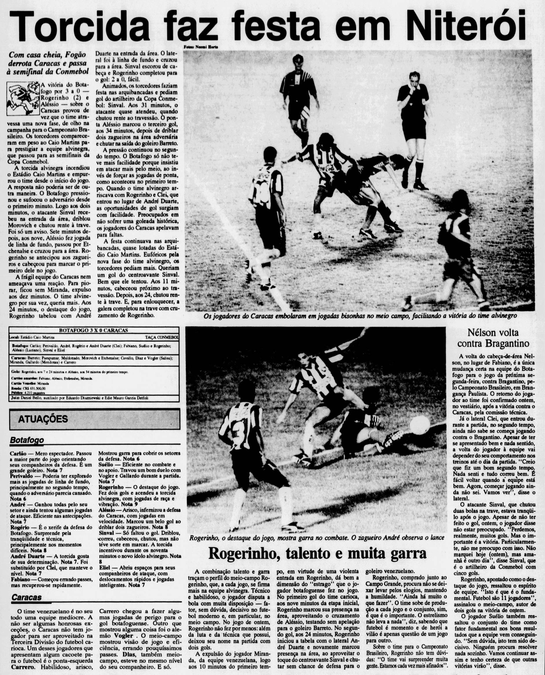 Em 1993, o Botafogo recebeu o Caracas no Caio Martins pela Copa Conmebol.