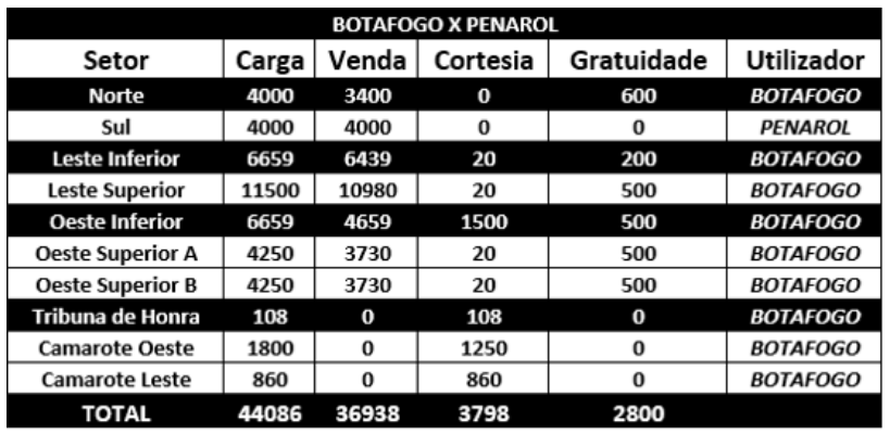 Veja a carga disponibilizada para Botafogo x Peñarol: