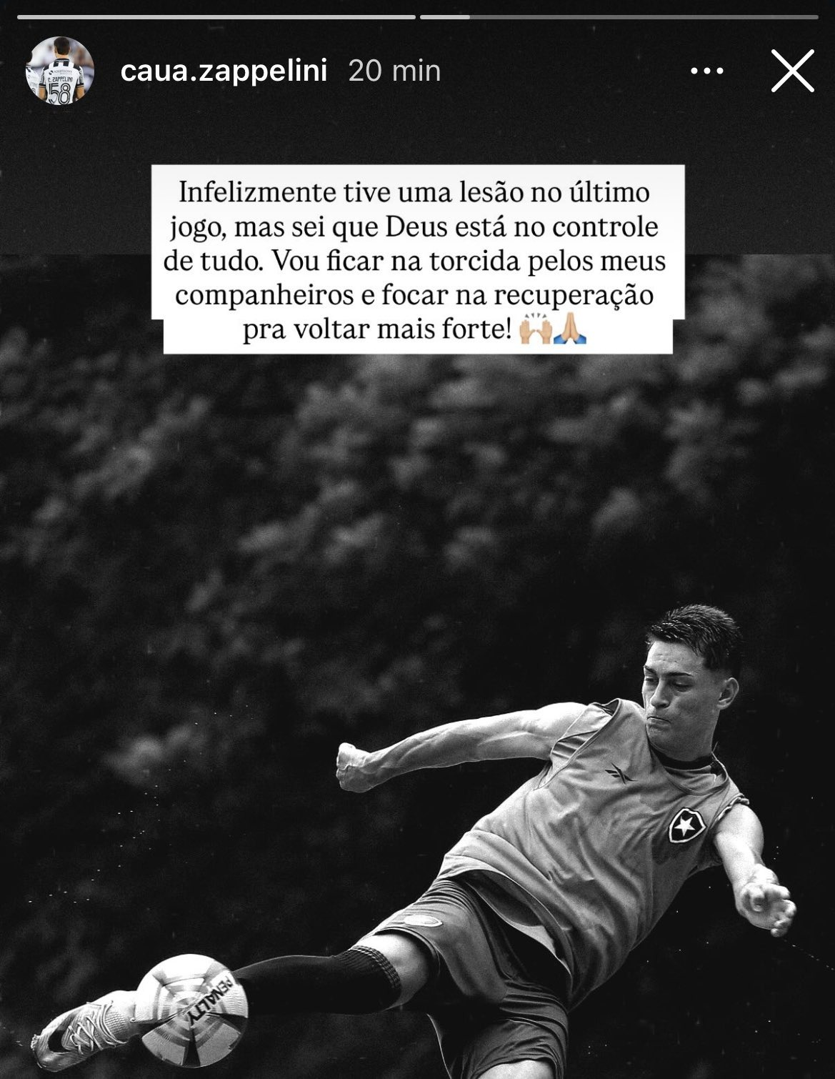 “Infelizmente tive uma lesão no último jogo, mas sei que Deus está no controle de tudo. Vou ficar na torcida pelos meus companheiros e focar na recuperação para voltar mais forte“, escreveu o meia.