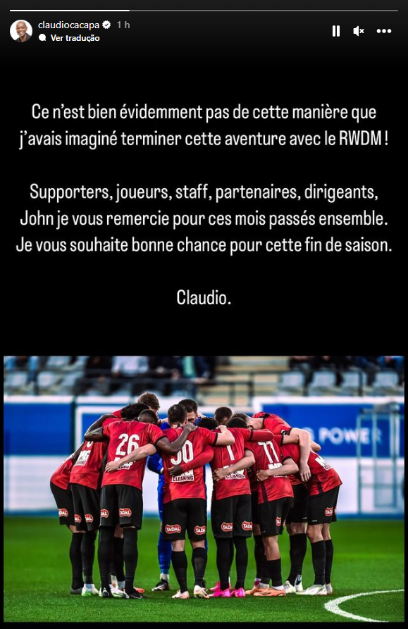 Demitido após a derrota para o Royal Antwerp por 4 a 0, em Bruxelas, no último domingo (11/2), o técnico Cláudio Caçapa se despediu do RWD Molenbeek, clube da holding de John Textor, com uma mensagem em suas redes sociais.
