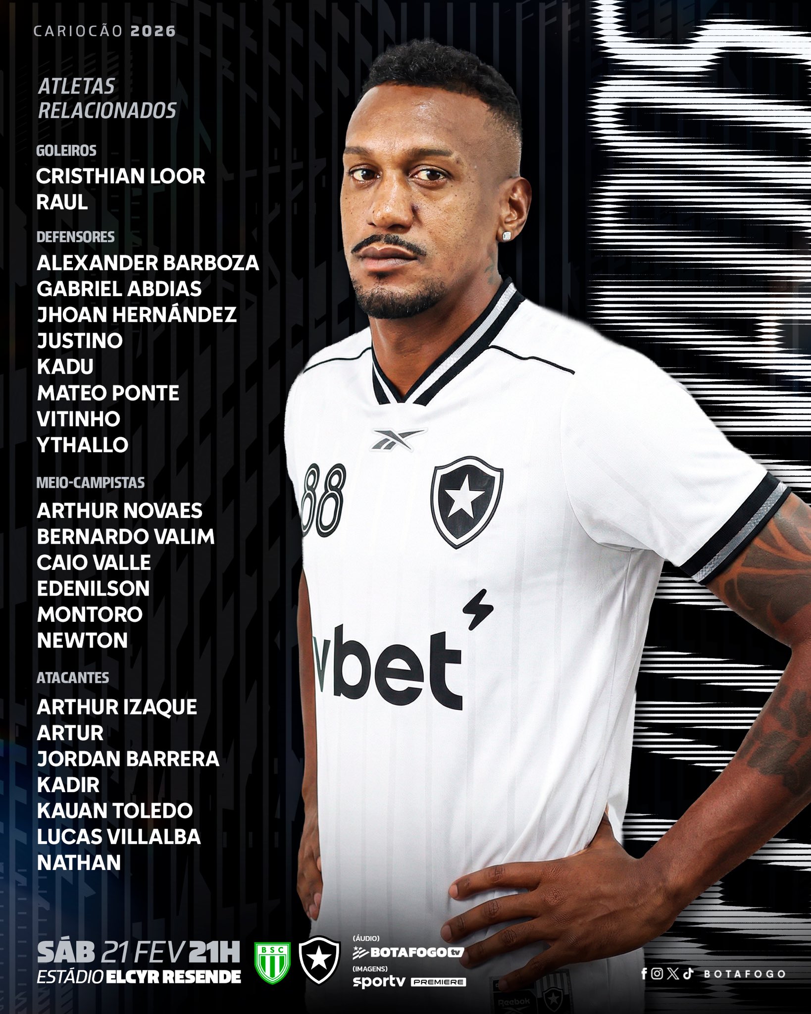 O Botafogo divulgou a lista de relacionados para o jogo com o Boavista, neste sábado (21/2), em Saquarema, pela ida da semifinal da Taça Rio. Os possíveis estreantes Edenílson e Jhoan Hernández estão na relação.