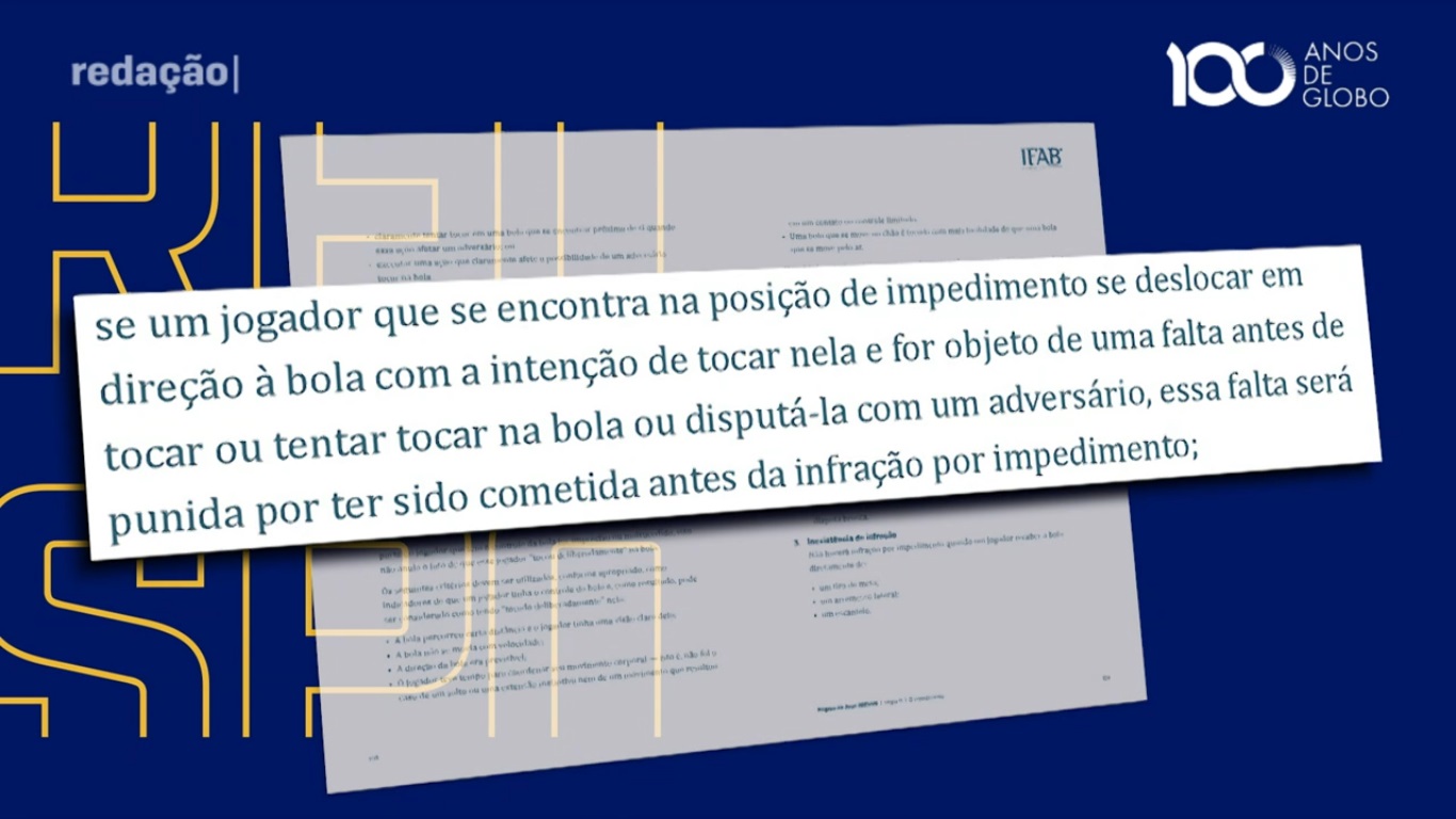 – A dúvida que eu tenho, depois disso tudo, eu não sei se o clube vai caminhar pra esse lado, é: se não é um lance interpretativo, se é uma regra que está escrita e se for um lance que não foi marcado por falta de conhecimento, ou seja, se você fere a regra, isso é um erro de direito. É que nem a bola entrou, não entrou. Ou a bola que entra por fora do gol, não sei. Se é um lance que não cabe interpretação, é isso? Essa conclusão não cabe interpretação? A regra não foi aplicada corretamente, aí é uma discussão. Tem que ter cuidado com isso tudo – completou.
