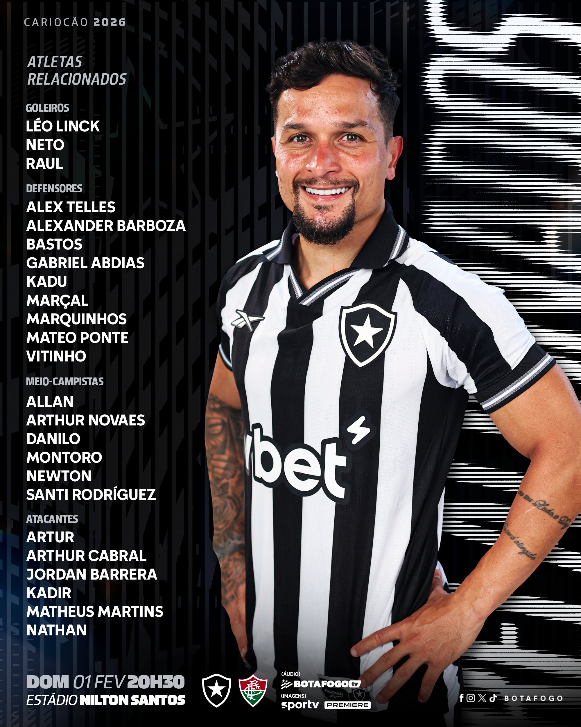 O Botafogo divulgou a lista de relacionados para enfrentar o Fluminense neste domingo, pelo Campeonato Carioca. São duas novidades em relação à última lista: o lateral-esquerdo Gabriel Abdias e o zagueiro/volante Marquinhos.