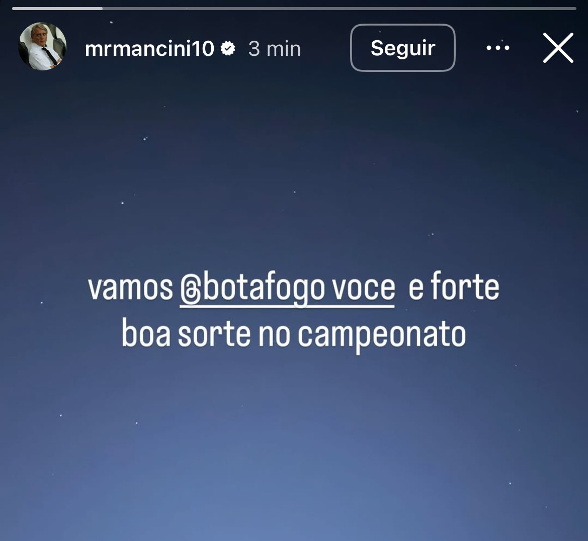 “Vamos Botafogo, você é forte. Boa sorte no campeonato“, escreveu o italiano em um story na rede social, com a foto de um entardecer estrelado ao fundo.