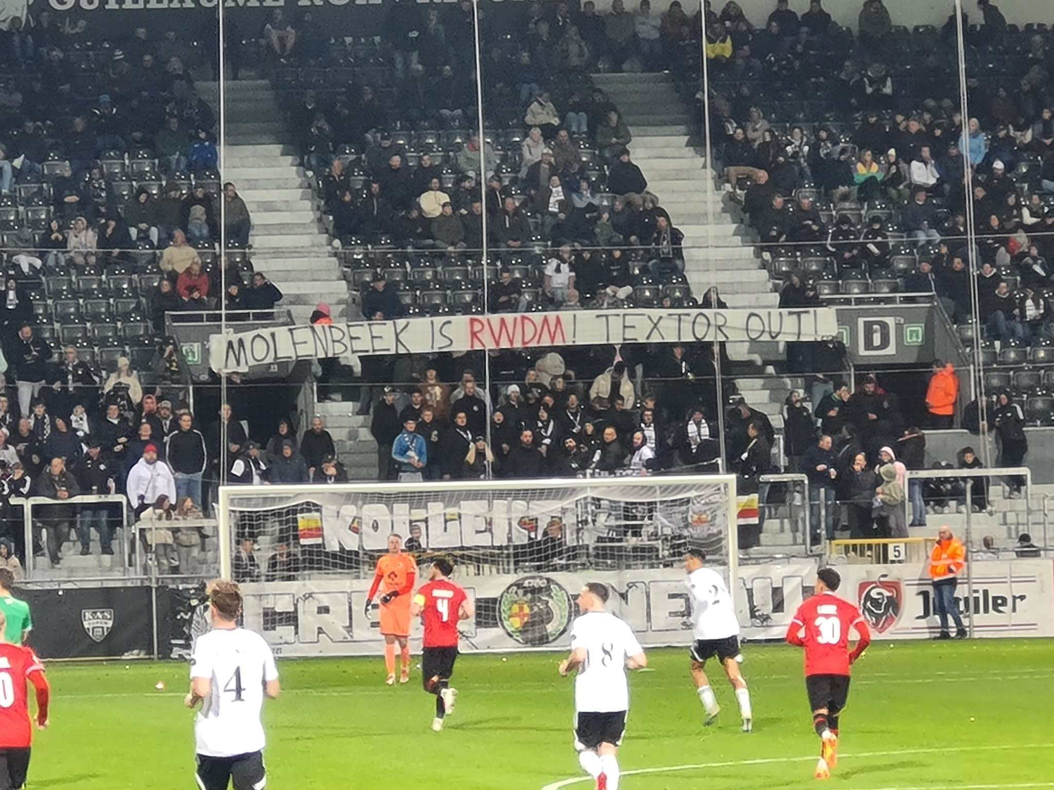 Apesar do jogo fora de casa, houve novos protestos da torcida do RWDM Brussels na arquibancada do Kehrwegstadion contra John Textor, acionista majoritário do clube (veja abaixo). O time ocupa a 8ª colocação, com 11 pontos, a cinco da zona de classificação para os playoffs de acesso.