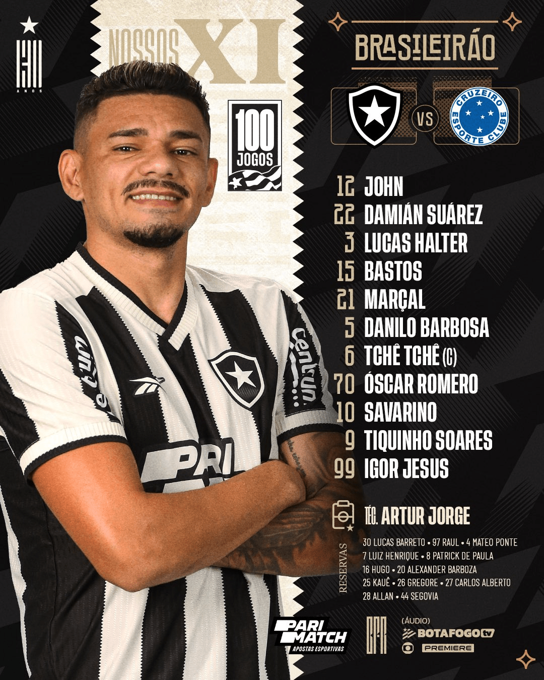 Além das alterações forçadas por conta das suspensões de Cuiabano e Marlon Freitas, Artur Jorge poupa Luiz Henrique, Alexander Barboza e Gregore. Entram no time Lucas Halter, Marçal, Danilo Barbosa, Óscar Romero e Igor Jesus.