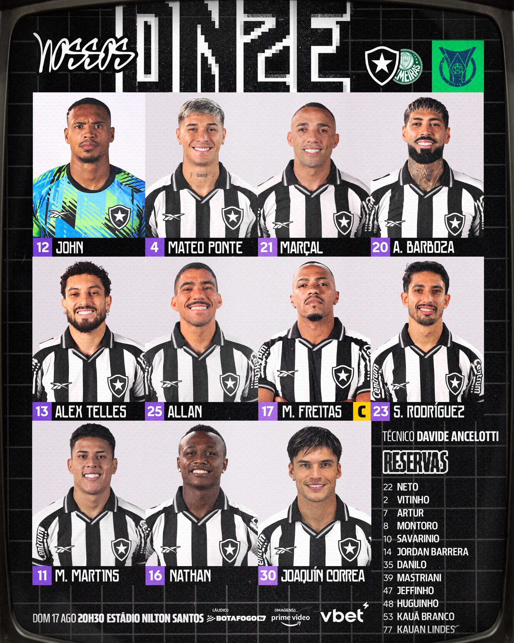 Devido ao jogo na altitude de Quito contra a LDU na próxima quinta-feira, o Botafogo está escalado com um time misto pelo técnico Davide Ancelotti para enfrentar o Palmeiras logo mais neste domingo (17/8), às 20h30, no Estádio Nilton Santos, pela 20ª rodada do Campeonato Brasileiro.