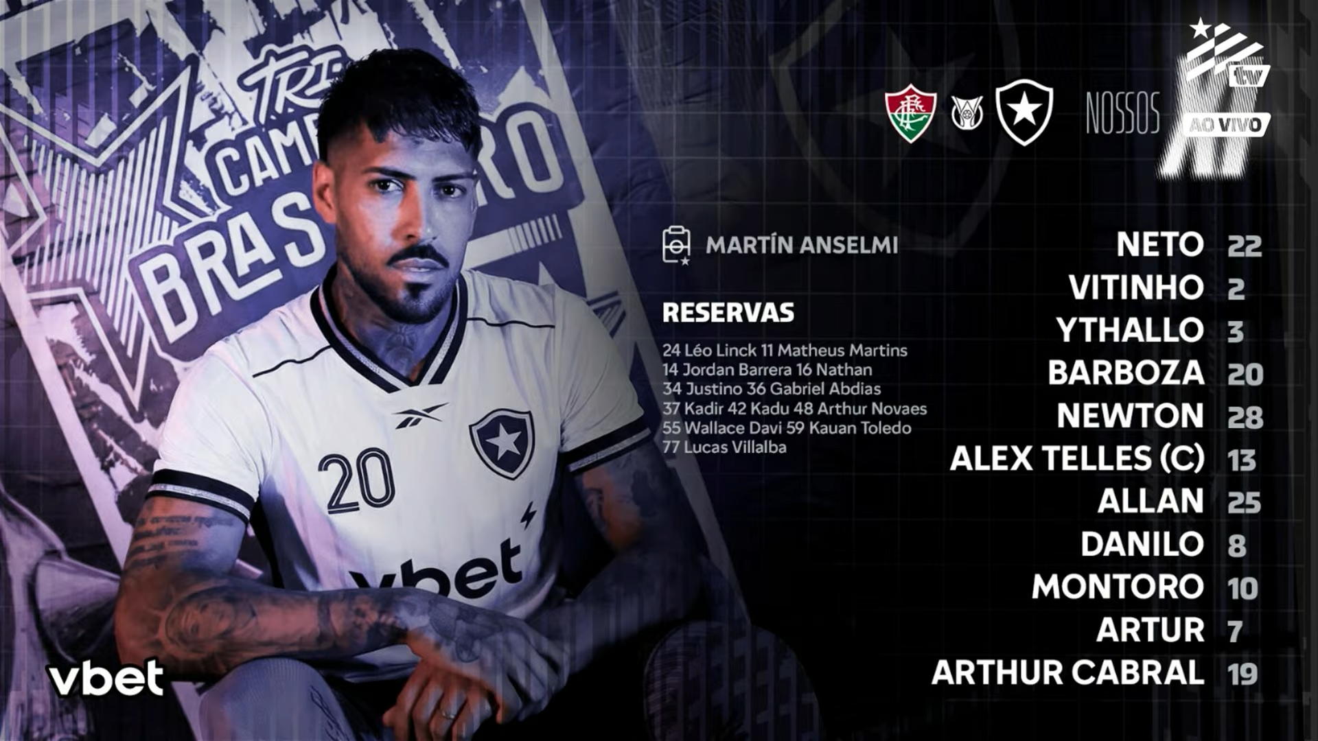 O Botafogo está escalado pelo técnico Martín Anselmi para o clássico contra o Fluminense nesta quinta-feira (12/2), às 19h30, no Maracanã, pela terceira rodada do Campeonato Brasileiro.