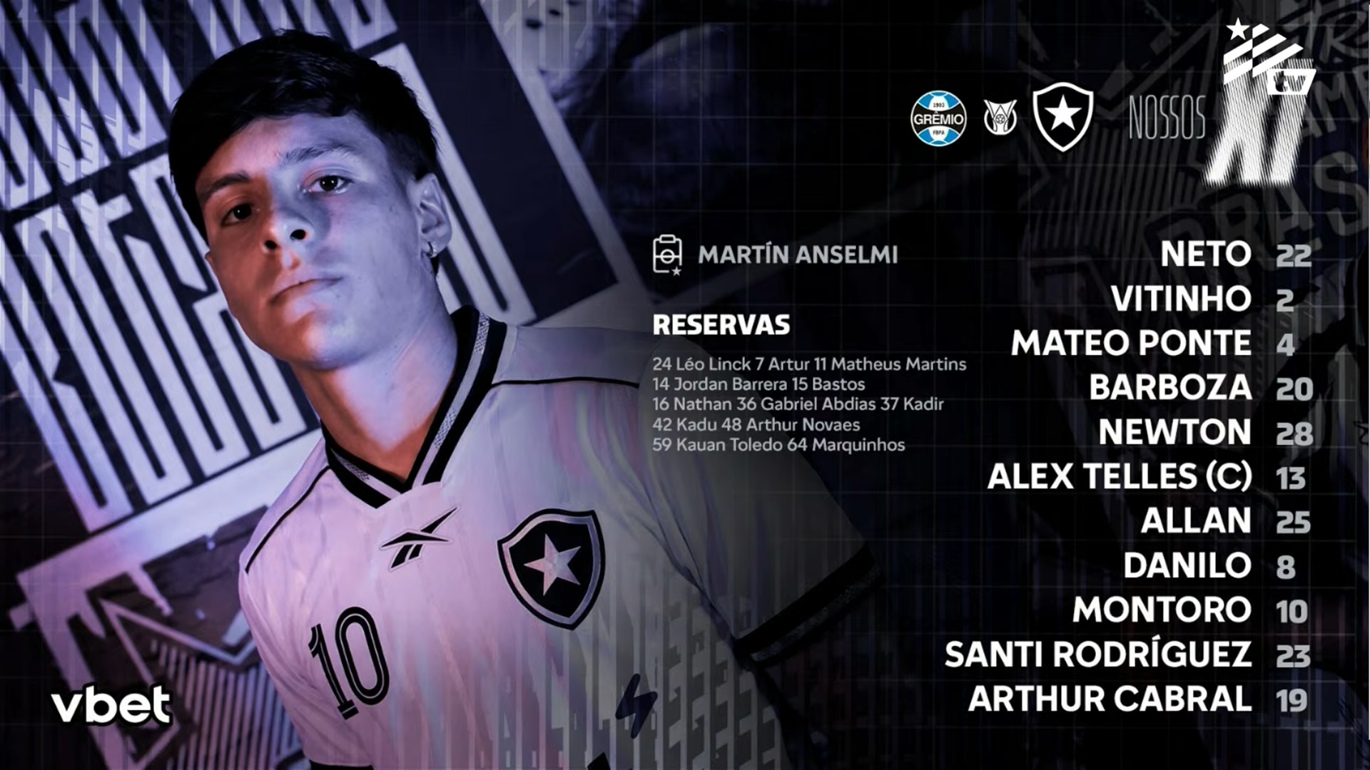 O Botafogo está escalado pelo técnico Martín Anselmi para enfrentar o Grêmio logo mais nesta quarta-feira (4/2), às 21h30, na Arena do Grêmio, pela segunda rodada do Campeonato Brasileiro.