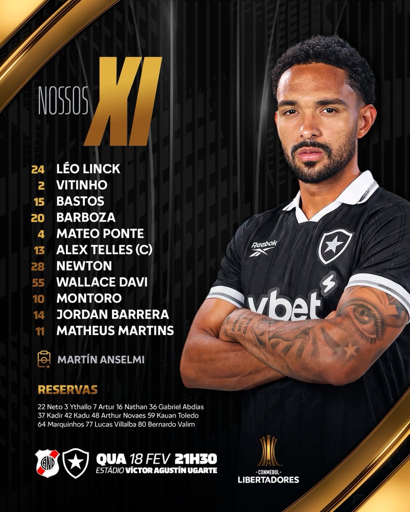 O Botafogo está escalado pelo técnico Martín Anselmi para enfrentar o Nacional Potosí logo mais nesta quarta-feira (18/2), às 21h30, em Potosí, pela segunda fase preliminar da Libertadores.
