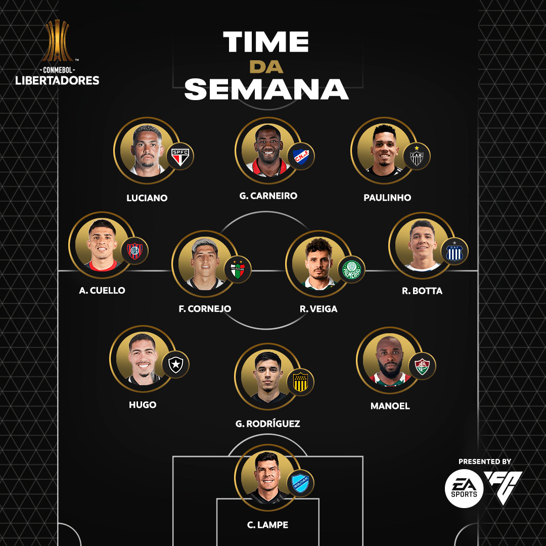 O time da semana ficou assim: Carlos Lampe (Bolívar); Manoel (Fluminense), Guzmán Rodríguez (Peñarol) e Hugo (Botafogo); Rubén Botta (Talleres), Raphael Veiga (Palmeiras), Cornejo (Palestino) e Alexis Cuello (Cerro Porteño); Paulinho (Atlético-MG), Carneiro (Nacional-URU) e Luciano (São Paulo).