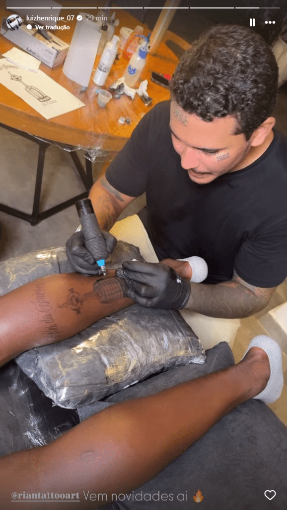 Em suas redes sociais, Luiz Henrique postou vídeo já fazendo uma tatuagem com a taça da Libertadores e a inscrição “Rei da América”. A responsabilidade foi do tatuador Rian Félix.