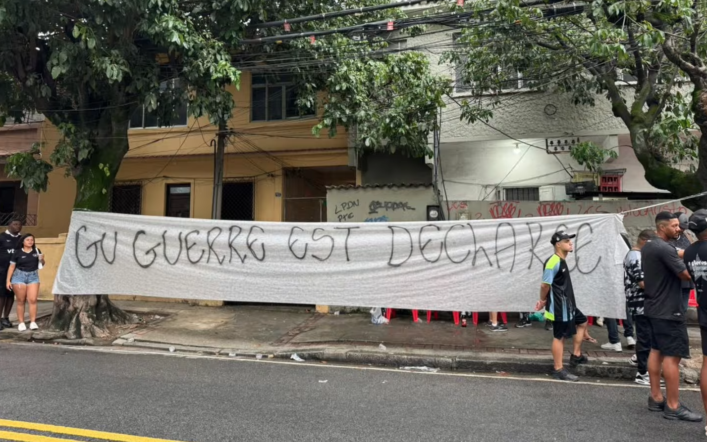 Até mesmo uma faixa em francês foi escrita, dizendo que “A guerra foi declarada”.