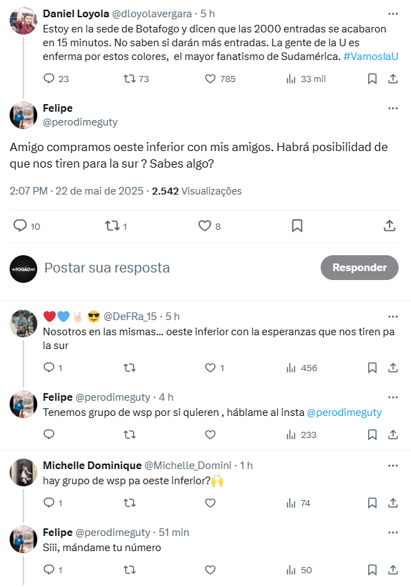 Alguns torcedores da La U estão publicando na internet que compraram ingressos para setores destinados à torcida do Botafogo, como Oeste Inferior e Oeste Superior B. Até um grupo foi criado para que eles tentem acessar o Nilton Santos juntos.
